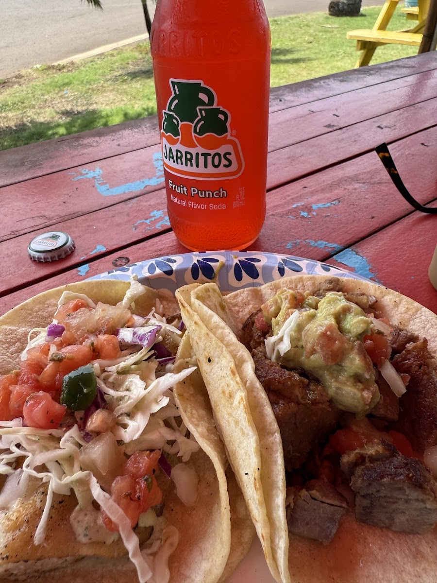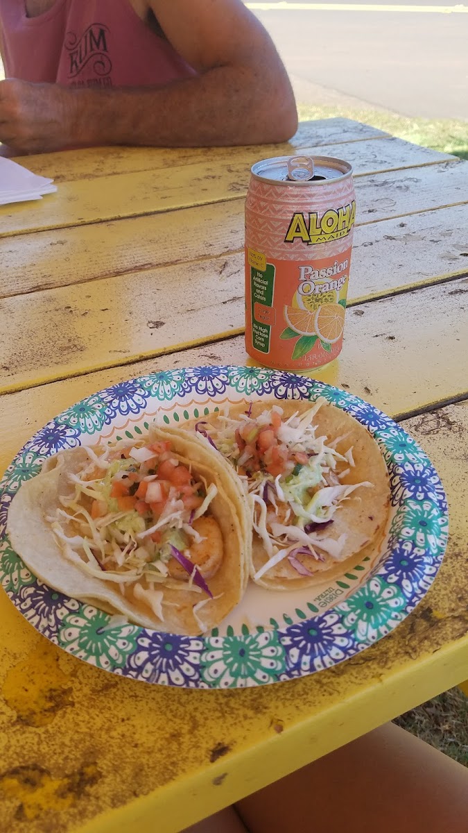 Whew! Real good. I don’t know what’s going on but Kaua’i has really good Mexican food! Ordered the two taco plate with rice and beans. Rice and beans were very very good. You could taste the depth of flavour in the broths that were the foundation of the two side dishes. I asked whether to go with the carne asada or the chicken and was told the carne asada. I also asked about whether to choose the fish or the shrimp and was told the fish. Carne asada and the fish (mahi mahi) was so tasty. They also have incredible hot sauces. Eat this food.