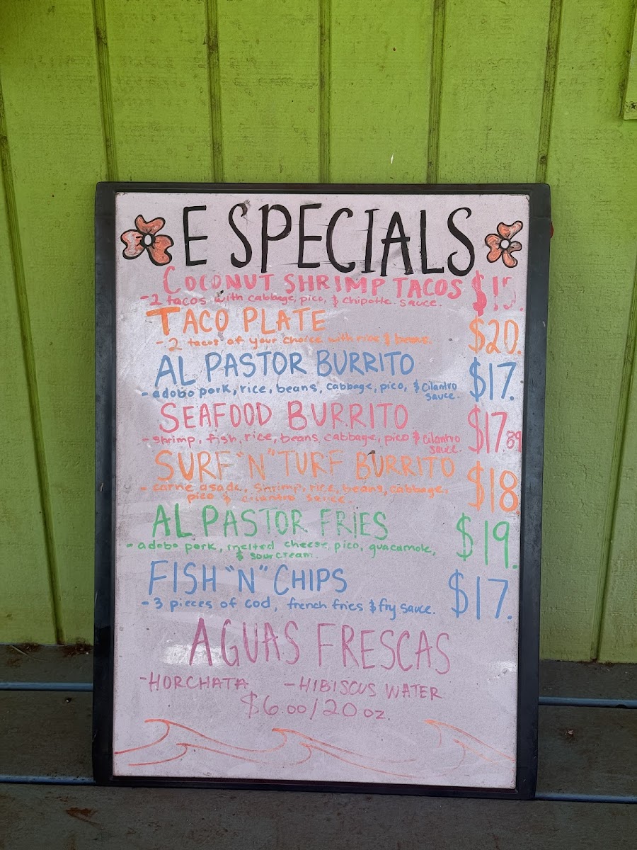 This menu fits well with the easygoing atmosphere of a small local spot where meals feel familiar and satisfying without fuss. Whether stopping by for a casual taco or enjoying a larger plate like carne asada fries or a seafood burrito special, diners can expect honest, straightforward flavors that pair nicely with the outdoor picnic-style seating and friendly pace.