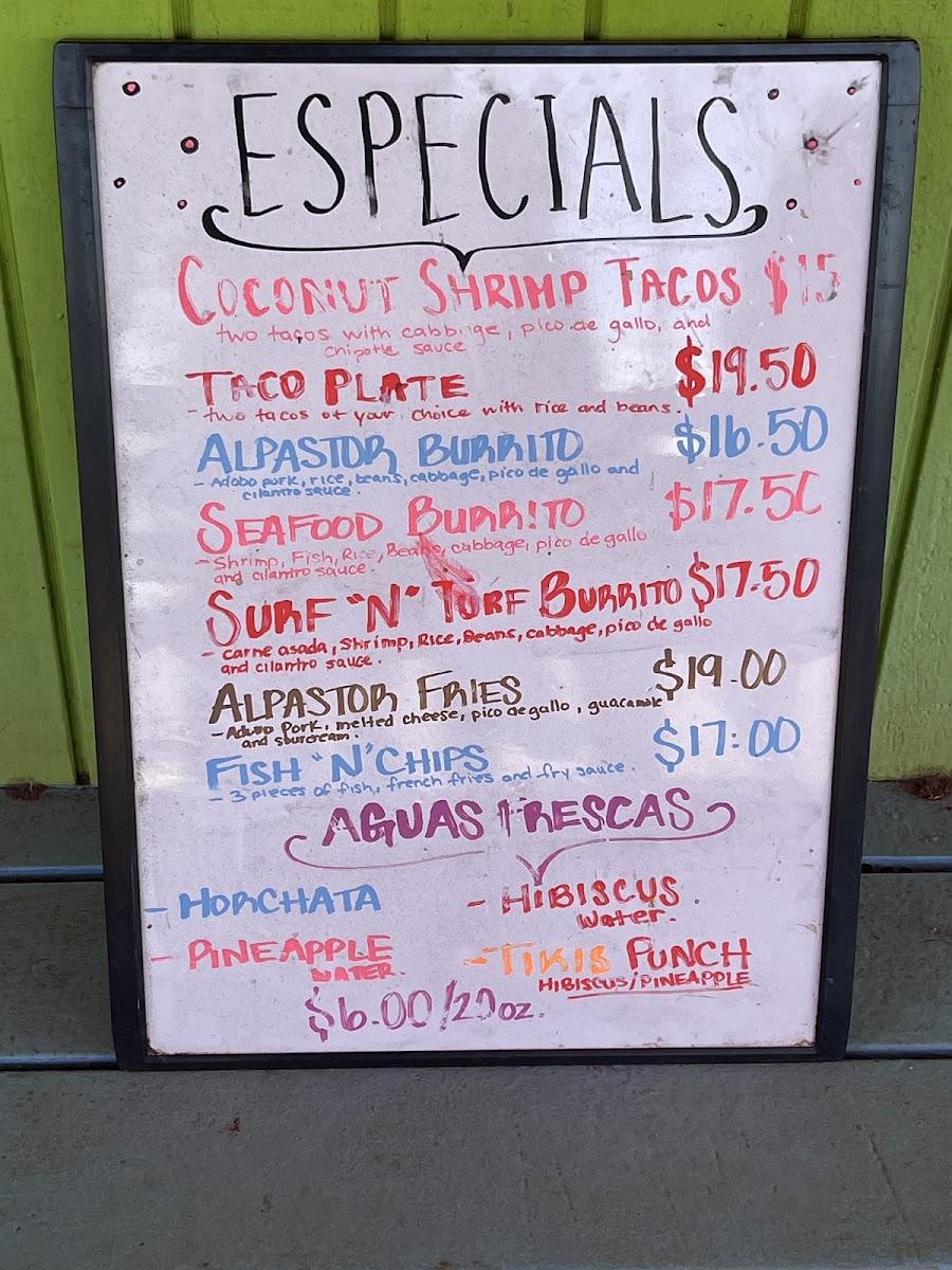The menu features classics like fish and shrimp tacos, hearty burritos, and comforting enchiladas alongside snacks such as taquitos and guacamole. Many dishes come with familiar sides like rice and beans, grounding the flavors in tradition while keeping things approachable. Refreshing drinks such as hibiscus water and horchata provide a cool complement, suited to the warm Hawaiian setting.